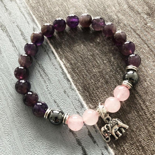Amethyst and Rose Quartz Crystal Elephant Bracelet