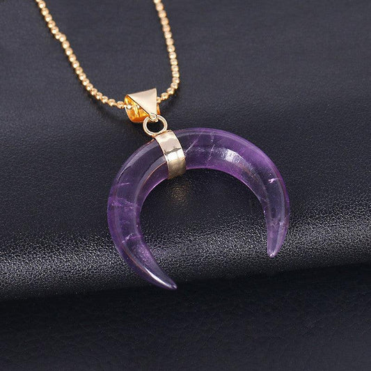 Amethyst or Rose Quartz Crystal Moon Necklace