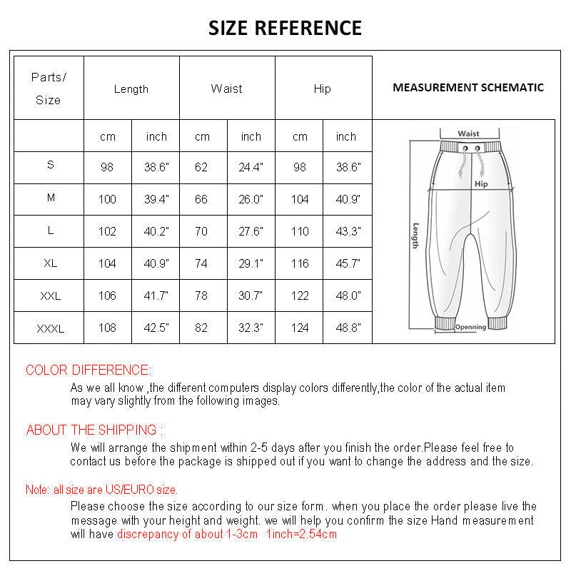 NOTE: These pants run small. You may need 1 to 2 sizes larger than normal. Please see the size chart in the photos for assistance selecting the correct size.